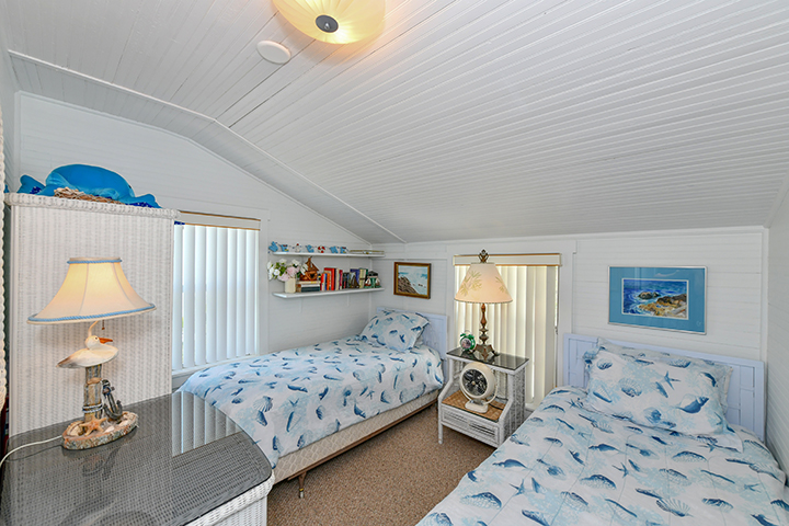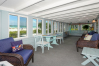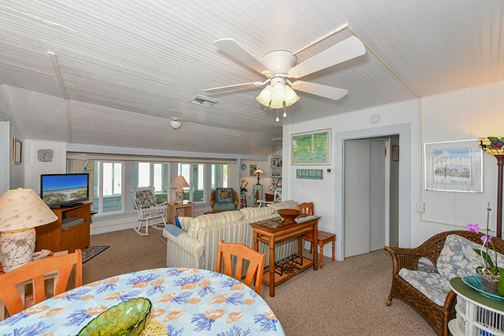 Our second floor beach front unit features 2 bedrooms. One has a queen bed, while the second has 2 twin beds. One bath, separate eat-in-kitchen, living/dining room and a large enclosed porch complete with swing.